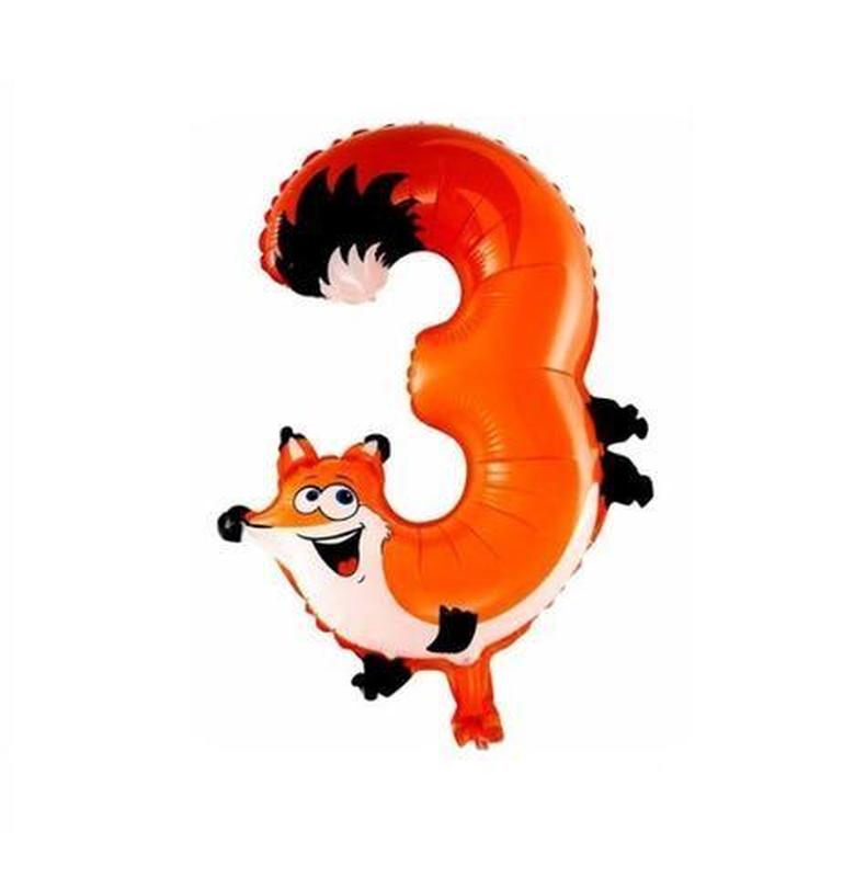 Фольгированный шар цифра "3" ЛИСА размером 40 см. Можно надувать воздухом