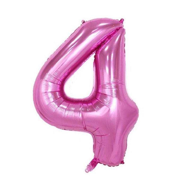 Фольгированный шар цифра "4" РОЗОВАЯ размером 70 см. Можно надувать воздухом
