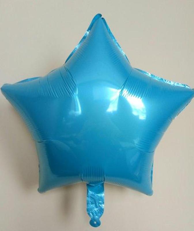 Фольгированный шарик в форме звезды, размером 45 см (18 дюймов). Можно надувать воздухом или гелием.