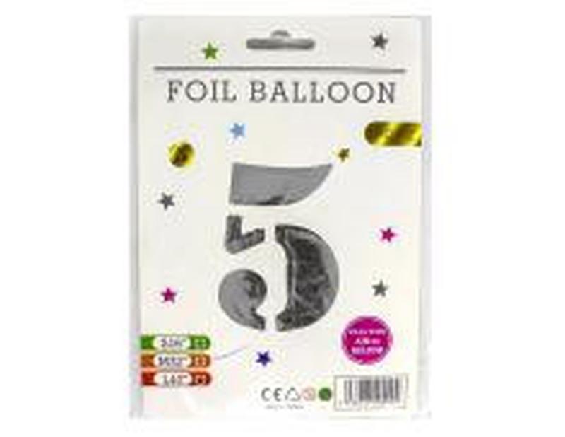 Кулька-цифра срібна 5 фольга 86см в інд уп 991017