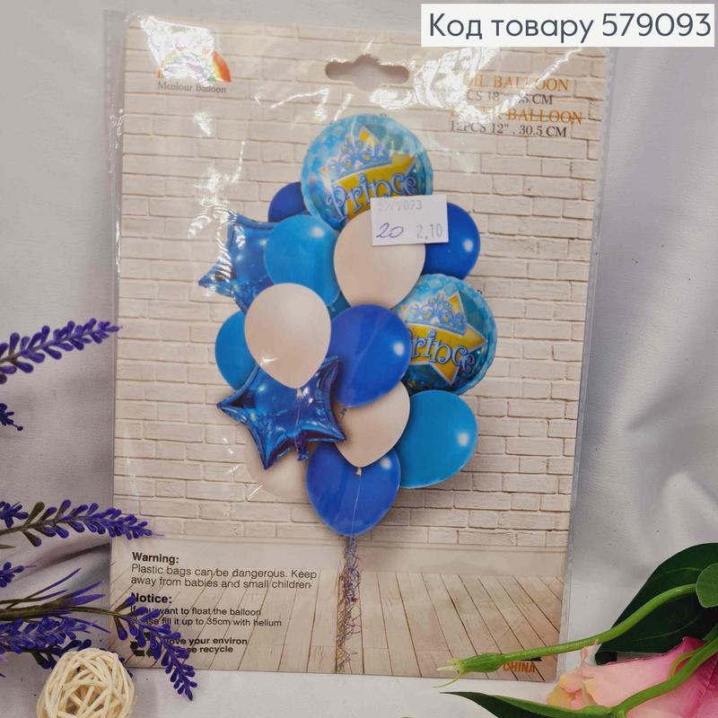 Набір фольгованих куль, блакитних, "prince" (фольга/2шт), зірка (фольга/2шт), латексні (12...