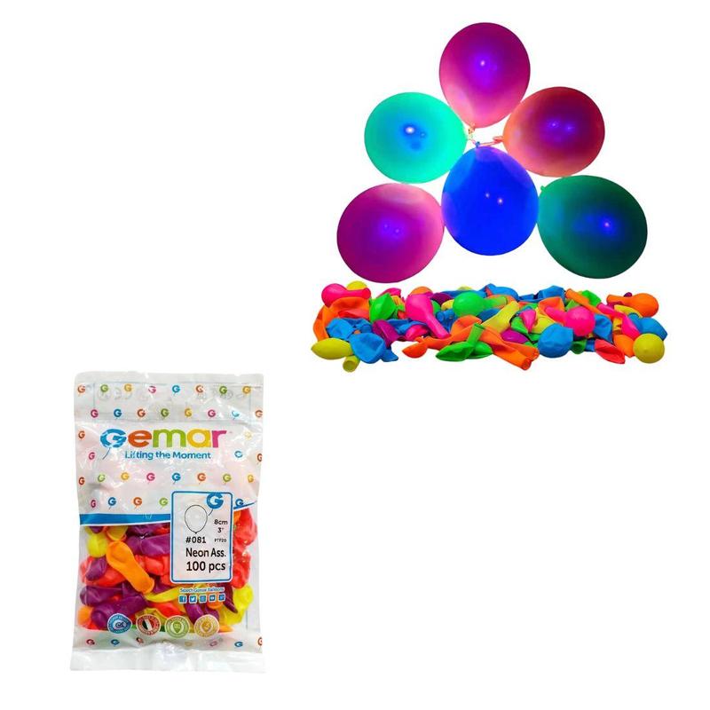 Воздушные шарики – бомбочки неоновые ассорти, диаметр 8 см, 100 шт в пакете