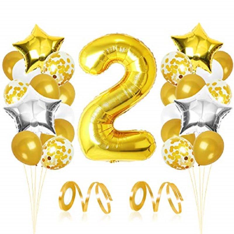 Набір повітряних кульок Зірковий у золоті У набір входить: Фольгована фігура Цифра (на ваш вибір) золото 80 см - 1 шт Фольгована фігура Зірка срібло 45 см - 2 шт Фольгована фігура Зірка золото 45 см - 2 шт Латексна повітряна куля із золотим конфетті 30 см - 6 шт Латексна повітряна куля біла 25 см - 6 шт Латексна повітряна куля золото хром 25 см - 10 шт Клейові точки 20 шт Стрічка 10 м