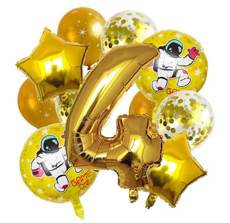 Набір кульок Космос В набор входит: Фольгированная фигура Цифра (на ваш выбор) золото 80 см - 1 шт Фольгированная фигура Круглая с космонавтом желтая 44 см - 2 шт Фольгированная фигура Звезда золото 45 см × 45 см - 2 шт Латексный воздушный шар золото хром 30 см - 3 шт Латексный воздушный шар с золотым конфетти 30 см - 3 шт