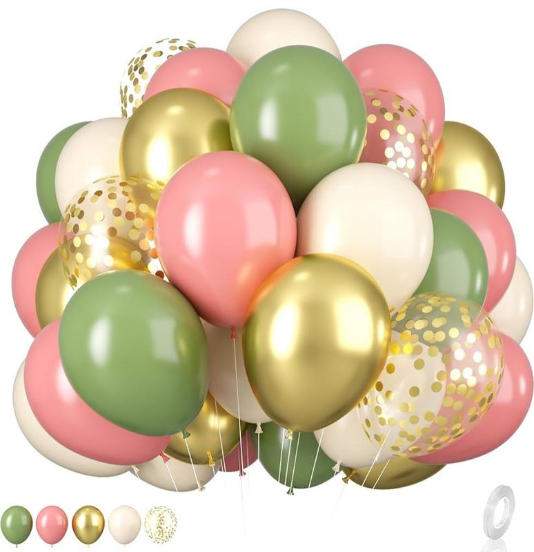 Набор воздушных шариков В набор входит: Куля лате 25 см - 8 шт Куля рожева 25 см - 8 шт Куля оливкова 25 см - 5 шт Куля золото хром 25 см - 5 шт Шар с золотым конфетти 30 см - 4 шт