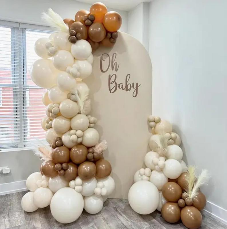 3 шт шарика белые 48 см 30 шт шарика белые 26 см 15 шт кульки латте 26 см 25 шт кульки мокко 26 см 12 шт кульки мокко 13 см 18 шт шарика белые 13 см 18 шт кульки латте 13 см Пластиковая лента для быстрого монтажа арки Клеевые гель-точки упаковка 100 шт