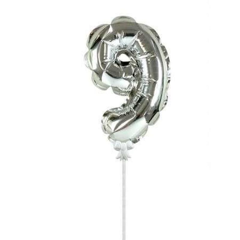 Шарик цифра в торт серебро 9