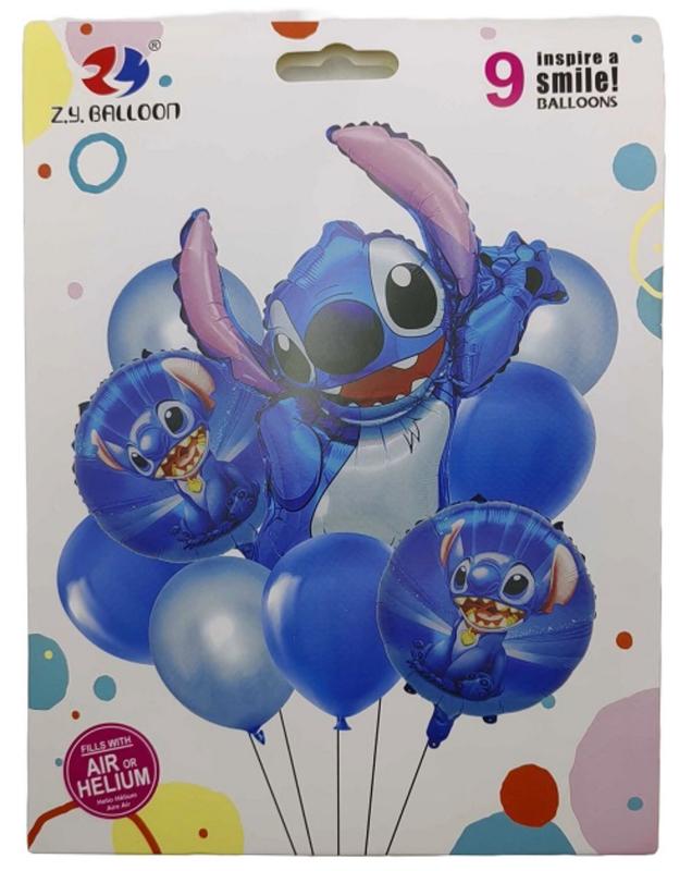 Набір повітряних куль Стіч 9шт (1шт.*61см+2шт.*45см+6шт.*30см)