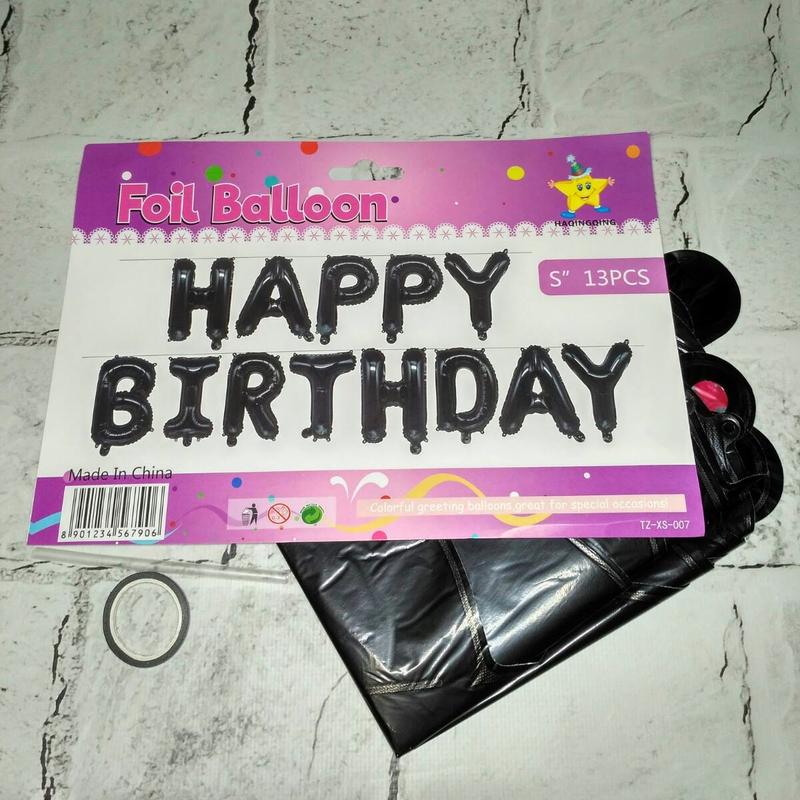 Набор воздушных шаров, фольгированные буквы Happy birthday Высота 30 cм Цвет - черный Материал - металлизированная лавсановая пленка. Воздушные шары подходят для надувания воздухом или гелием. Воздушные шары чувствительны к значительным изменениям температуры воздуха.