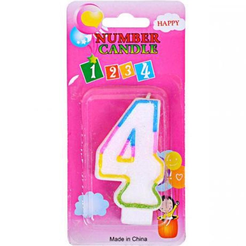 Свеча-цифра цветная с блесками "4" 10-113 knz