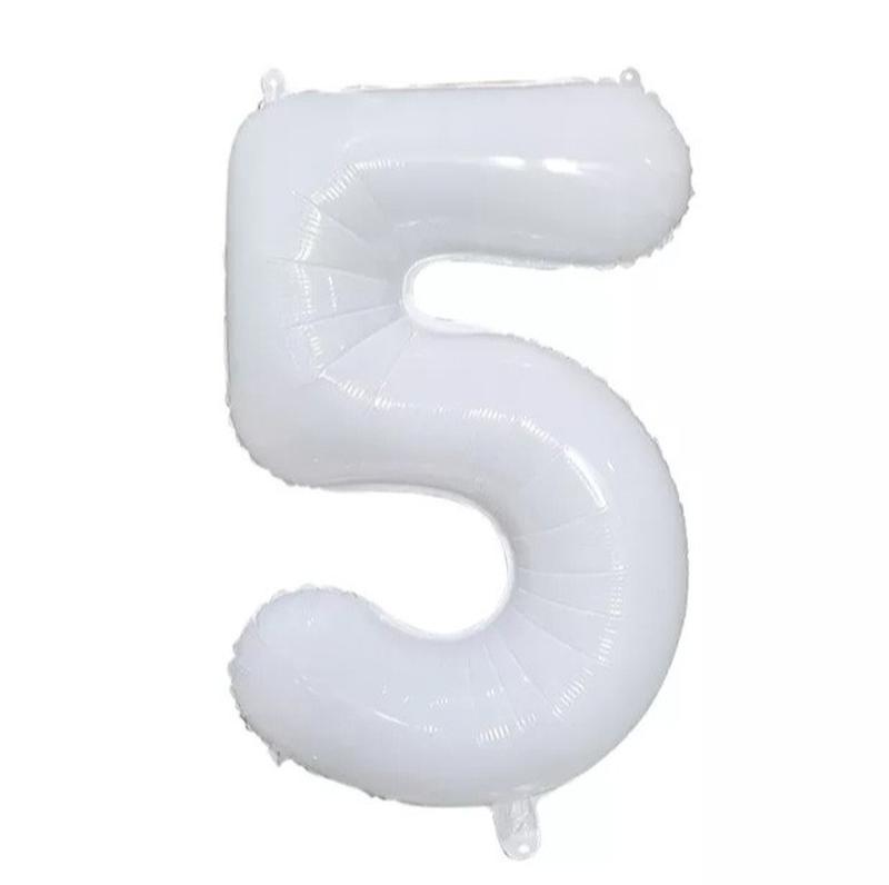 Шар цифра 5. Цвет: белый. Размер: 32 дюйма. Материал: фольга.