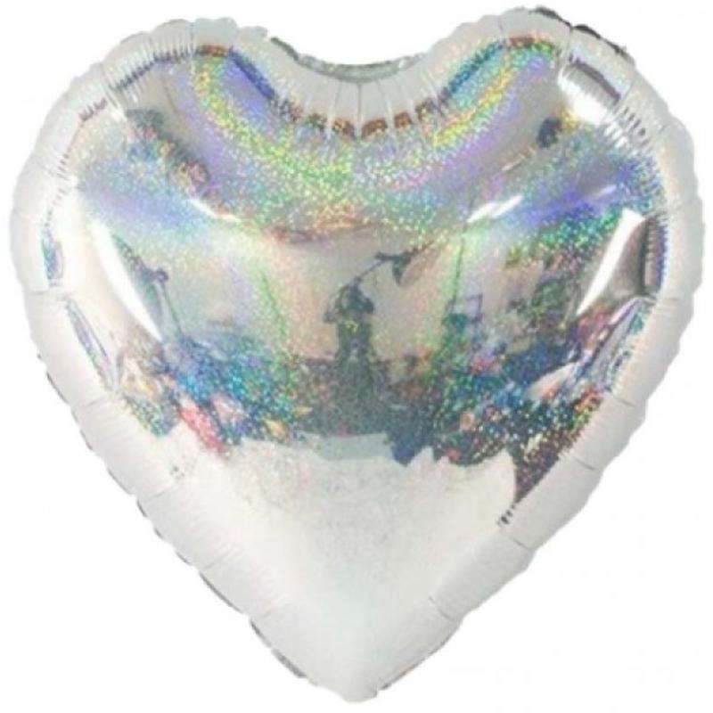 Набір кульок повітряних фольгованих "серце голограма" блиск срібло 18"45см 5 штук 833652 p...