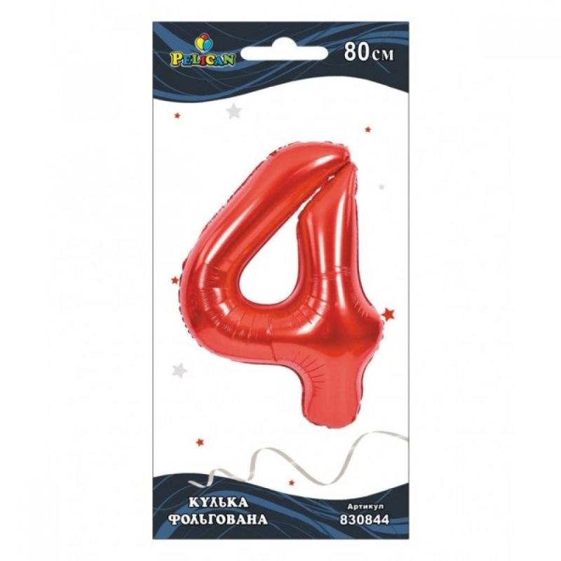Кулька повітр. фольгована "Цифра-4" 80см червона №830844/Pelican/(1)(10). Святковий набір повітряних кульок, ідеальний для декорування урочистих заходів.