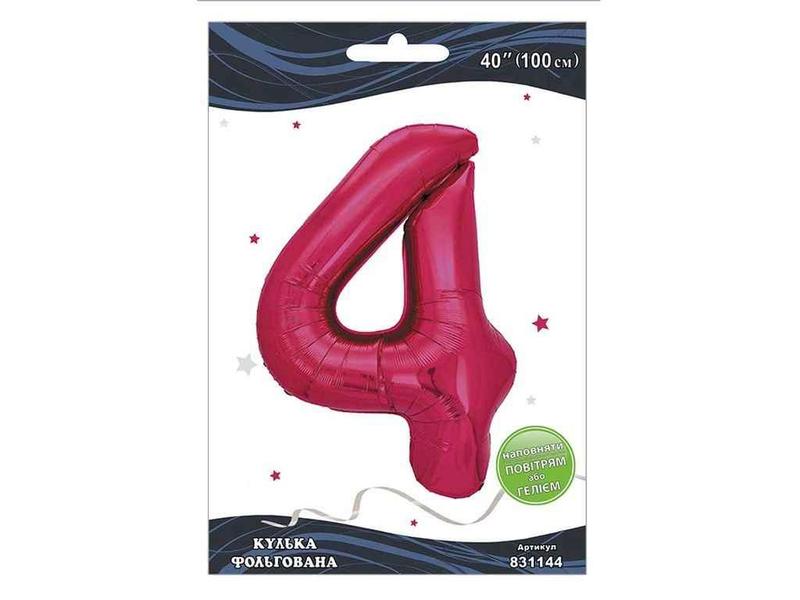 Шарик фольгированная цифра 40 (100 см) 4 фуксия тм pelican