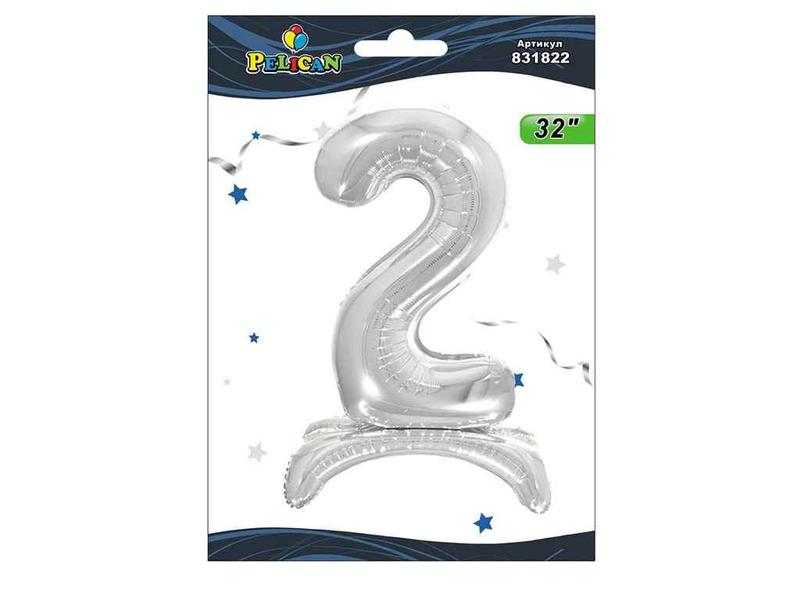 Шарик фольгированная цифра на подставке 2 срибло 80см. 831822 тм pelican