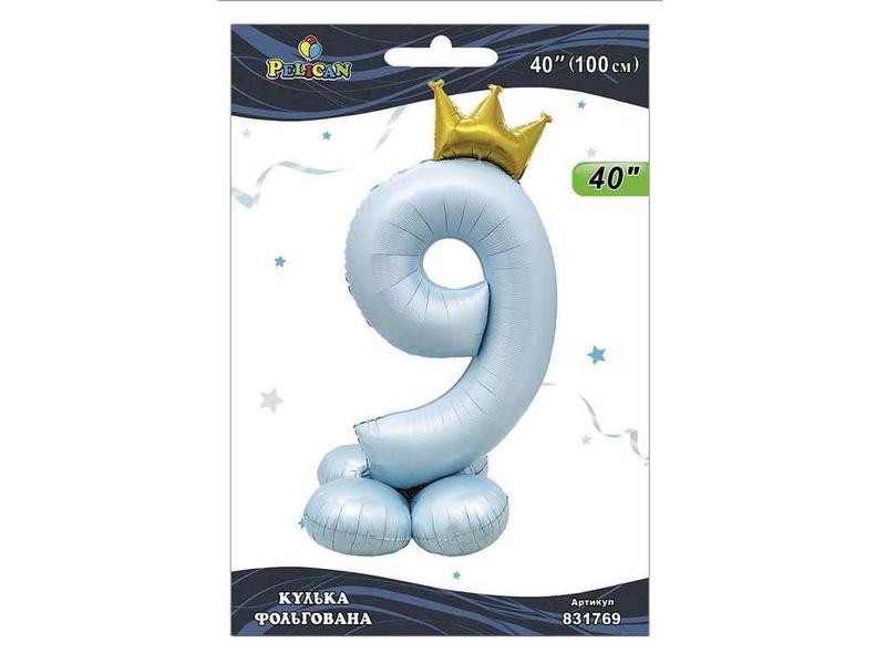 Шарик фольгированная цифра 40 (100 см) с короной на подставке 9 голубая тм pelican
