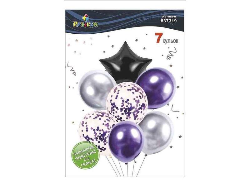 Набор из шариков звезда 7шт серебряно- фиолетовый микс с хромом тм pelican