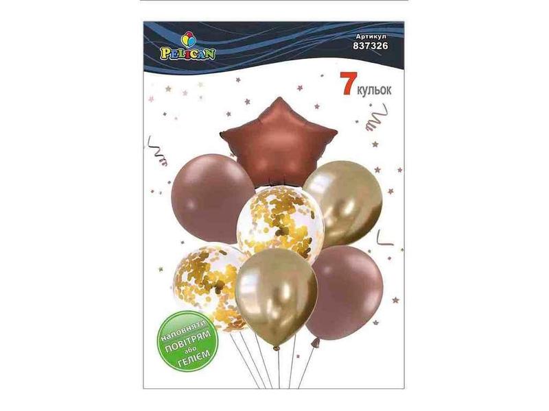 Набор из шариков звезда 7шт коричнево-золотой микс с хромом тм pelican