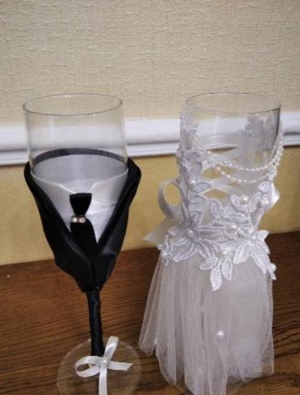 Свадебные бокалы для молодоженов. Ручная работа. Цвет декора белый, есть в наличии шампань(айвори, крем, беж) Доп. фото и замеры по запросу Отправлю Новой или Укрпочтой после оплаты на мою карту. Обмена и возврата нет