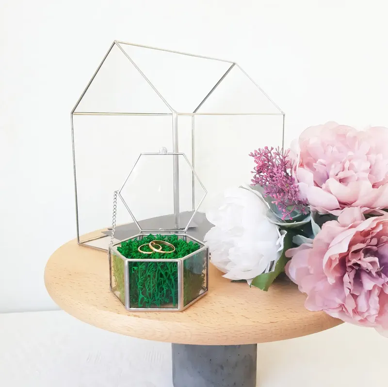 МЫ SOLDER studio - создаём красивые вещи ручной работы из стекла и металла. Очень важно чтобы свадебный декор был стильным, лаконичным и всё было оформлено в едином стиле. Поэтому мы подготовили набор - шкатулочка для колец + сундук для конвертов. Подобный декор стал трендом 2021-2022 года и прекрасно сочетается с разными стилями свадеб, такими как эко, лофт, урбан, хай тек, рустик . Это действительно уникальное дополнение вашего торжества! 🔥БЕСПЛАТНО - наполнение для шкатулки, натуральный стабилизированный мох зелёного цвета. Каждое изделие это ручная работа . Стекло толщиной 2 мм нарезают на необходимые детали, оборачивают медной лентой и спаивают детали между собой металлом. РАЗМЕРЫ: 1. Шкатулка ВЫСОТА 4 см | ШИРИНА 8 см 2. Сундук для конвертов "ДОМИК", вмещает до 80 конвертов формата А5. ВЫСОТА 22 см | ШИРИНА 15 см | ДЛИНА 22 см *размер открытой панели : 22*10,5 см ЦВЕТ ШВОВ - серебряный Мы находимся в городе Днепр, по Украине возможна отправка НП, в Днепре самовывоз.