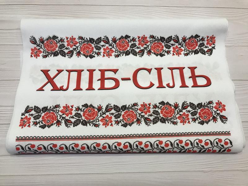 Свадебный рушник печатный "хліб-сіль" розы 150*35 см