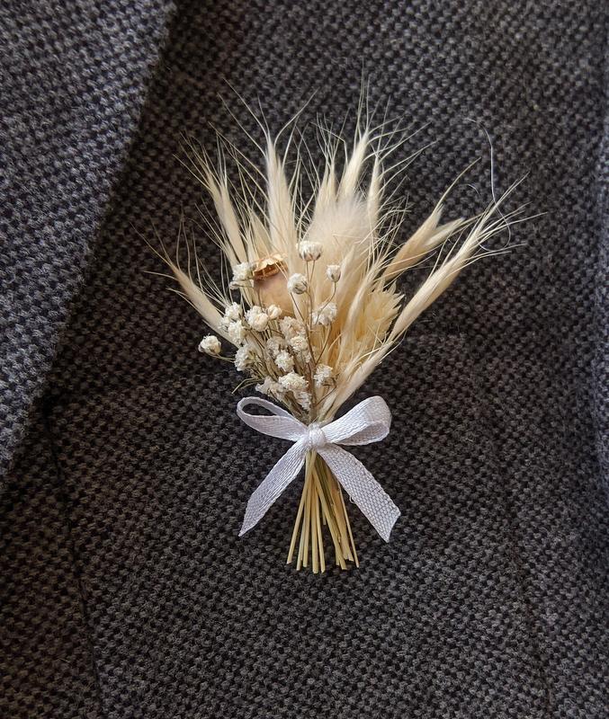 Виробник: Власне виробництво Тип весільних аксесуарів: Букети Кілька примірників у наявності Бутоньєрки можна замовити для гостей, нареченого, свідків, зроблені із сухоцвітів. Є багато інших варіантів бутоньєрок для вас. Бутоньєрка кріпиться на одязі за допомогою брошки. Це надійно та безпечно навіть для дітей. Ціна вказана за одну бутоньєрку! Можливе виготовлення бутоньєрок для наречених, свічок, шампанського та інших весільних аксесуарів у такому ж стилі.