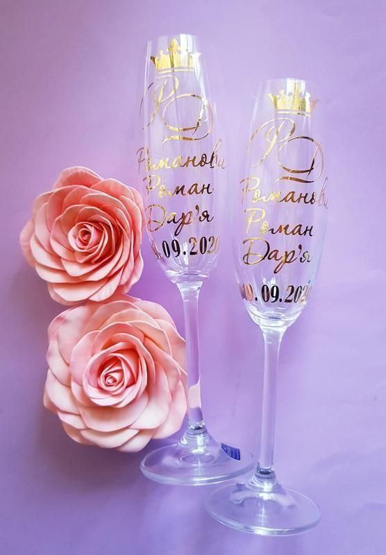 Весільні келихи Написи можливо будь-які Колір тексту: золото, срібло, білий, чорний, червоний, синій Термін виготовлення 7 днів відправка по Україні НП Додаткові характеристики: Декоративне оформлення: Наклейка Персоналізація: З гравіюванням Товар виготовляється на замовлення