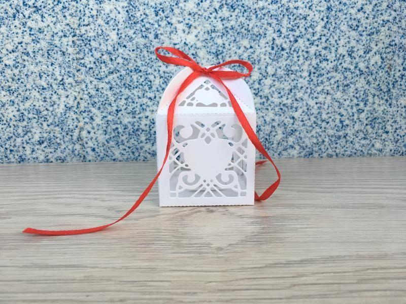 Оригинальная бонбоньерка с высеченным узором. Высеченный узор с 4 сторон Из дизайнерского картона, плотностью 220-250 гм *** Бонбоньерка обвязана атласной лентой. Лента идет в комплекте. *** Цветовая гамма и детали могут быть подобраны индивидуально. *** Размер 5*5*7,5 см Товар под заказ