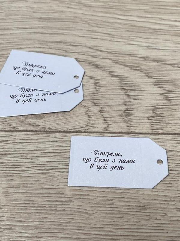 Бирочки для бонбоньерок ,подарков гостям. *плотный перламутровый картон * размер 5.5 *3 см Текст можно поменять цена указана за 1 шт Товар под заказ