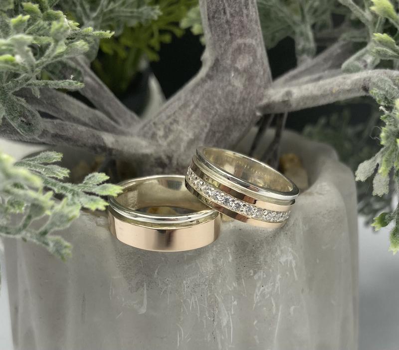 Кілька примірників у наявності Обручки срібні з пластинами золота.