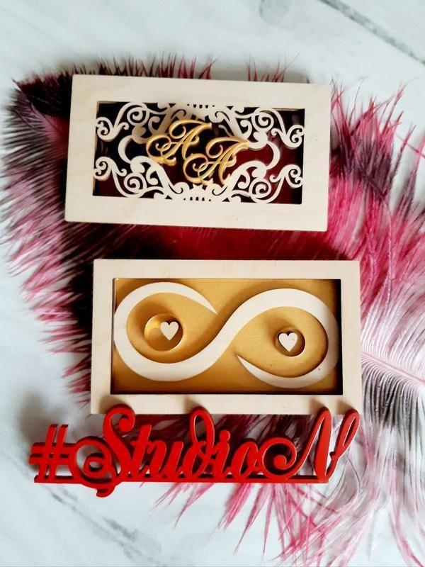 Шкатулка для обручальных колец с резным рисунком и знаком бесконечности на успех. Шкатулка для обручальных колец украсит свадебную церемонию. Такая шкатулка подойдет для свадьбы в любом стиле. Деревянная подставка выполнена в форме круга, украшена изображениями ваших инициалов и даты. Маленькие деревянные сердечки помогут закрепить кольца на подставке. 14х8 см см, толщина 18 мм гладко обработана шлифовкой. Блюдце для колец, подставка для колец из дерева. Красивая подставка для колец на свадьбу— незаменимый аксессуар для заключения брака в ЗАГСе или во время красивой выездной церемонии. Этот важнейший элемент свадебного ритуала будет притягивать взгляды ваших гостей и фотографов! Деревянные подставки или коробочки для обручальных колец на свадьбу будут великолепно выглядеть на фотографиях и в руках молодоженов во время торжественного обмена кольцами! Материал - шлифованная фанера 4мм, 6 мм Товар под заказ