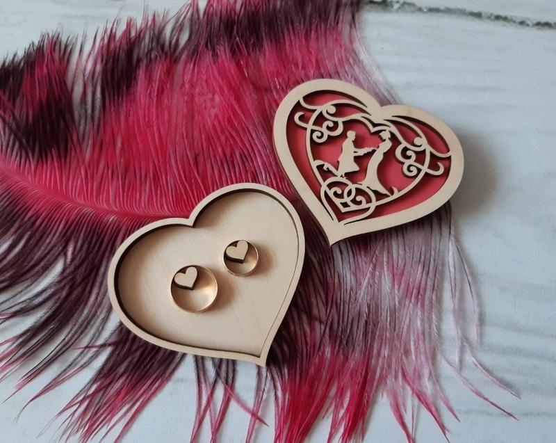Свадебные атрибуты. Шкатулка для обручальных колец ЖЕНИХ НЕВЕСТА украсит свадебную церемонию. Такая шкатулка подойдет для свадьбы в любом стиле. Деревянная шкатулка несет тепло и энергию природы. Маленькие деревянные сердечки помогут закрепить кольца на подставке. 9х8 см см, толщина 16 мм гладко обработана шлифовкой. Шкатулка для колец, подставка для колец из дерева. Красивая подставка для колец на свадьбу— незаменимый аксессуар для заключения брака в ЗАГСе или во время красивой выездной церемонии. Этот важнейший элемент свадебного ритуала будет притягивать взгляды ваших гостей и фотографов! Деревянные подставки или коробочки для обручальных колец на свадьбу будут великолепно выглядеть на фотографиях и в руках молодоженов во время торжественного обмена кольцами! Материал - шлифованная фанера 4мм, 6 мм