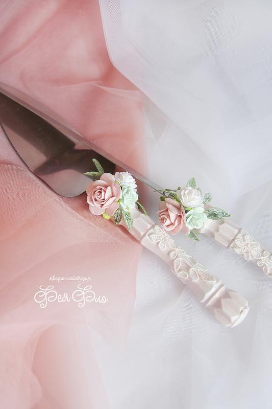 Нож и лопатка для резки свадебного торта. Декорированные художественным акрилом, кружевом и цветами. Возможно исполнение в другом цвете и другой дизайн. Подробнее в приват. Товар под заказ