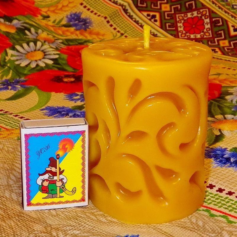 Декоративная свеча "Торжественная" из натурального воска, яркого и пахучего, с собственной пасеки. Идеально подходит в качестве подарка на свадьбу. Размер 7,5 х 7,5 см, высота 9,5 см, вес 340 г. Наполнит ваш дом уютом, а также ароматом прополиса, меда и прошлого лета. При изготовлении свечей используется воск различных оттенков. Вы не останетесь равнодушным! В нашем ассортименте более 30 видов очень красивых свечей из высококачественного воска. Спрашивайте - подскажем!