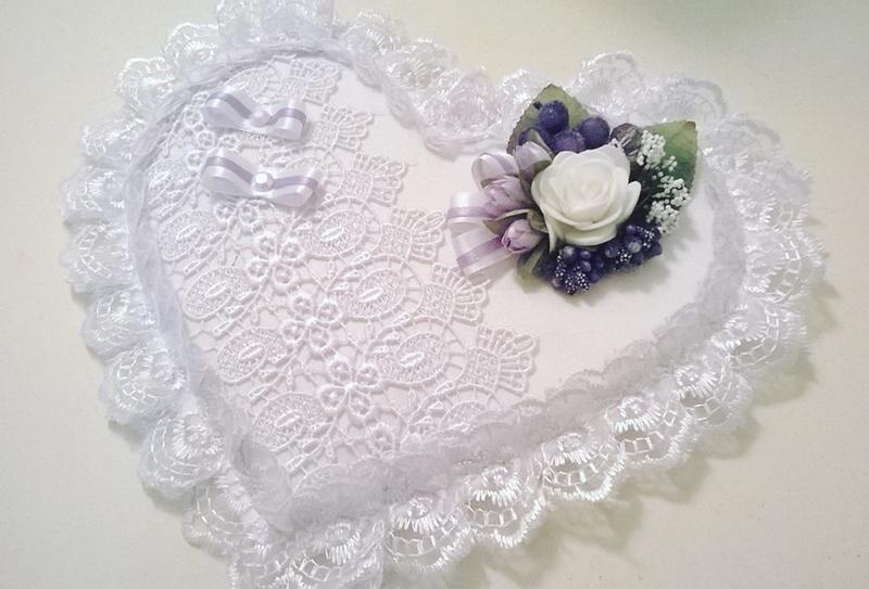 Подушечка для колец является частью общего декора свадьбы и поэтому должна быть выполнена в едином стиле и цвете со всем свадебным декором. При изготовлении мы используем кружева, ленты, жемчуг, цветочные композиции. Товар под заказ
