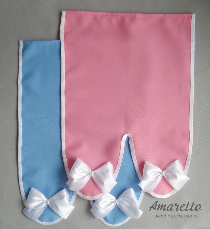 «Повзунки» для конкурсу. Матеріал – тканина габардин. Розмір 25*35см. Ціна вказана за набір з двох повзунків. Конкурс "Хлопчик чи дівчинка" На весіллі часто проводять жартівливе гадання для визначення, хто у молодят народиться першим: хлопчик чи дівчинка. Найчастіше, такий весільний конкурс проводять з допомогою повзунків рожевого і блакитного кольорів, в які гості кладуть гроші. Беруть участь в цьому зборі свідки і всі гості. Ведучий пропонує гостям допомогти визначити молодятам, хто у них народиться першим: хлопчик чи дівчинка. Свідки проходять поміж столами, а гості гості кладуть у повзунки гроші. Який мішечок швидше наповниться (або в якому сума буде більша), той і буде первістком. Для створення веселої атмосфери, свідками одягають жартівливі дитячі костюми - чепчики, комбінезони, слюнявчики і т.п. Альтернативою класичним повзункам для збору можуть бути шапочки, конвертики, пінетки, колясочки, горщики, дитячі відерця, мішечки з написами, шкатулочки. Важливо організувати цей конкурс таким чином, щоб він не напружував гостей, був веселим та оригінальним.