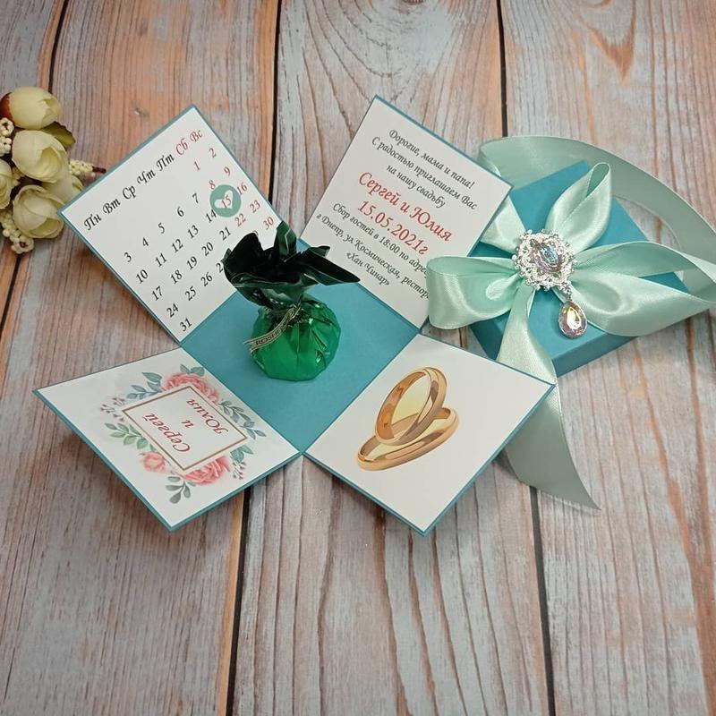 Пригласительные на свадьбу в виде коробочек. Цвет может быть любой. Цена указана без конфеты и без броши Товар под заказ