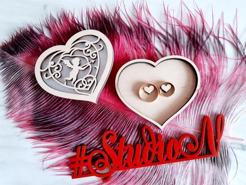 Шкатулка для обручальных колец ′Купидон′ 9х8 см. украсит свадебную церемонию. Такая шкатулка подойдет для свадьбы в любом стиле. Деревянная подставка выполнена в форме круга, украшена изображениями ваших инициалов и даты. Маленькие деревянные сердечки помогут закрепить кольца на подставке. 9х8 см см, толщина 16 мм гладко обработана шлифовкой. Шкатулка для колец, подставка для колец из дерева. Красивая подставка для колец на свадьбу— незаменимый аксессуар для заключения брака в ЗАГСе или во время красивой выездной церемонии. Этот важнейший элемент свадебного ритуала будет притягивать взгляды ваших гостей и фотографов! Деревянные подставки или коробочки для обручальных колец на свадьбу будут великолепно выглядеть на фотографиях и в руках молодоженов во время торжественного обмена кольцами! Материал - шлифованная фанера 4мм, 6 мм