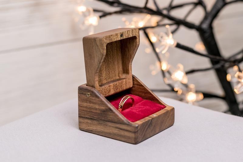 LR-3 Коробочка для колец «Верность» Коробочка для колец - вещь незаменимая. Если Вы планируете подарить любимому человеку дорогие кольцо, серьги или похожее украшение - коробочка тоже должна быть соответствующая! Крепкая древесина грецкого ореха станет символом крепких и длительных отношений. Качественная металлическая фурнитура, магниты, бархат премиум-класса практически любого цвета, высочайшее качество изделия и возможность персональной гравировки сделают коробочку неотъемлемым аксессуаром при вручении ювелирного изделия, а эмоции от получения подарка станут в разы насыщеннее! Мы производим 5 различных форм коробочек для колец - «Преданность», «Ракушка», «Верность», «Колонна», «Пламя». Выберите именно ту, которая сможет раскрыть Ваш замысел наилучшим образом и подарить ярчайшие эмоции! Цвет бархата будет черный (в стандартном исполнении) или бордовый/синий/бутылочный, если Вы это укажете в комментарии к Вашему заказу. Кроме того, мы можем сделать бархат абсолютно любого цвета по Вашему запросу, но это займет немного больше времени. Персонализированная гравировка (это может быть фамильный герб, логотип, просто текст или черно-белая фотография) на дереве сделает это изделие очень душевным и близким тому человеку, кто это получит. Внешний размер изделия: 57х60х37 мм. Изделие продается в аккуратной картонной коробке, пригодной для вторичной переработки. По желанию клиента мы можем выгравировать Ваши инициалы, любимую цитату или логотип компании на нашем продукте или даже изменить его конструкцию по Вашему запросу. Кроме этого, мы обернем Ваш заказ в подарочную упаковку или вложим поздравительную открытку с Вашим сообщением, если Вы нас об этом попросите. Обратите внимание: цвет Вашего продукта может незначительно отличаться от изображения, поскольку каждое изделие имеет индивидуальные и уникальные характеристики и особенности древесины. Ежедневно отправляем заказы Укрпочтой (бесплатно от 2000 грн) или Новой Почтой (бесплатно от 4000 грн). Материал: высококачественная обработанная древесина грецкого ореха, пропитанная натуральным маслом, премиальный велюр, неодимовые магниты и металлическая фурнитура. Сделано в Украине по всем стандартам eco-продукции. Дополнительные характеристики: Цвет: Коричневый Цвет: Малиновый Форма: Квадратная