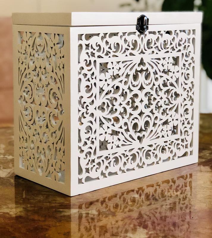 Сундук свадебный ажурный. Эта резная коробка может использоваться для подарков, пожеланий и других свадебных аксессуаров. Она станет отличным украшением интерьера и приятным напоминанием о торжестве или памятном событии. Размеры: 28,5 см х 15 см, высота 26 см. Выполнен из шлифованной натуральной березовой фанеры, толщиной 4 мм, с покраской белым цветом. Дополнительные характеристики: Цвет: Белый