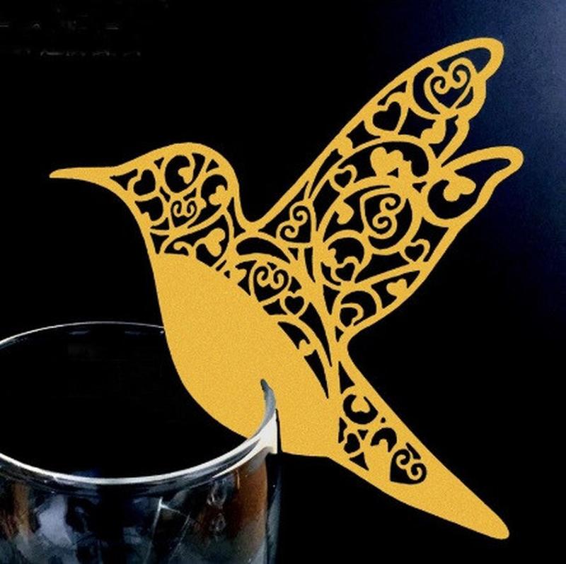 Прикраси для келихів Колібрі. Колір: золотистий. Розмір: 11*9см. Матеріал: папір (лазерна обробка). Кількість: набір 10шт.