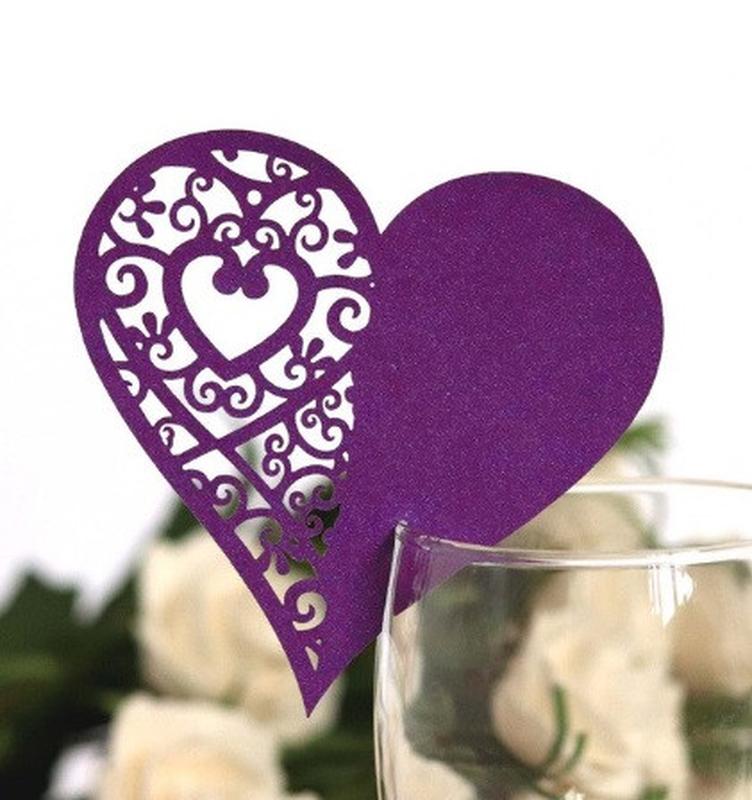 Рассадочная карточка. Цвет: фиолетовый. Размер: 8*8см. Материал: бумага (лазерная обработка). Количество: в наборе 10шт. Все наши товары Вы можете посмотреть на нашем сайте: Оригинальное украшение для бокалов Ваших гостей на свадьбе будут красивые сердца из фиолетовой бумаги. Это сердечко украсит бокалы Ваших гостей и сделает Ваш свадебный стол нарядным, праздничным. По окончании вечера сердечко можно аккуратненько снять с бокала. Сердечка на бокалах на свадебном столе могу стать хорошими "помощниками" при проведении торжества. Такое украшение бокала украсит ваш стол не только на свадьбе, но и на любом другом торжестве (день рождения, юбилей и т.д.)