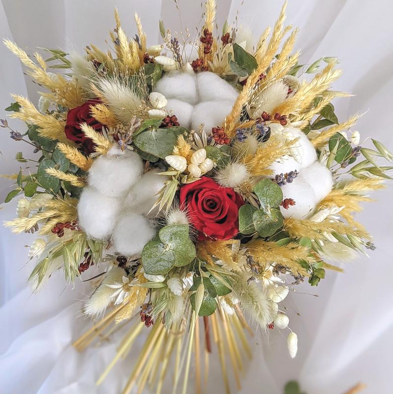 Свадебный букет невесты из сухоцветов с стабилизированным розами
