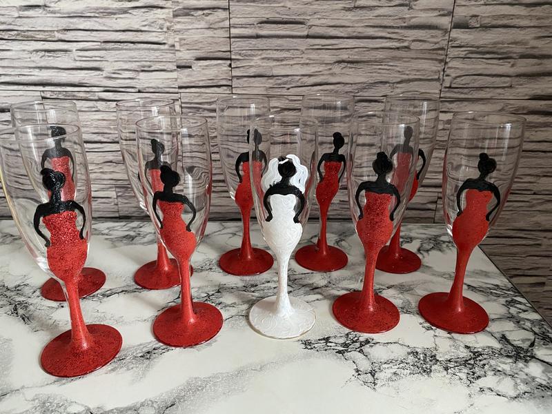 Бокалы на девичник, новые, 10 шт., ручная работа, присущую очень круто выглядят. В подарок отдам трубочки.