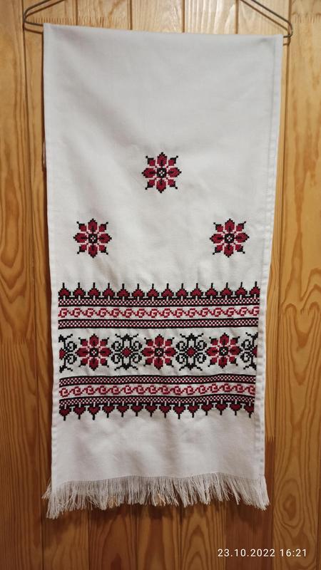 Веселенное полотенце вышит нитками в традиционных цветах красных и черных. Красный цвет является символом неразрывной кровной связи, символом любви и рождения. Красный является очень сильным, активным цветом, который имеет наиболее выраженные сакральные и защитные функции. Его роль – утверждение жизни, защита и энергетическая подкормка. Красный цвет соответствует стихии огня, он горячий, яркий и согревающий. Он совладает мужскую основу в природе. Черный цвет впитывает в себя информацию и энергию. Также он является цветом земли, торжества, богатства. Размер полотенца 36см*194см (узор 32см*43см) Цена 1260 грн Дополнительные характеристики: Тип рушника: Ручна вишивка Назначение: Для иконы Назначение: Для перевязки рук Назначение: Под коровай