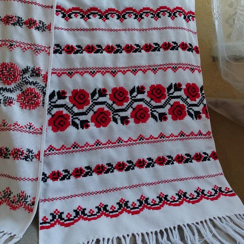 вышитое полотенце, розы