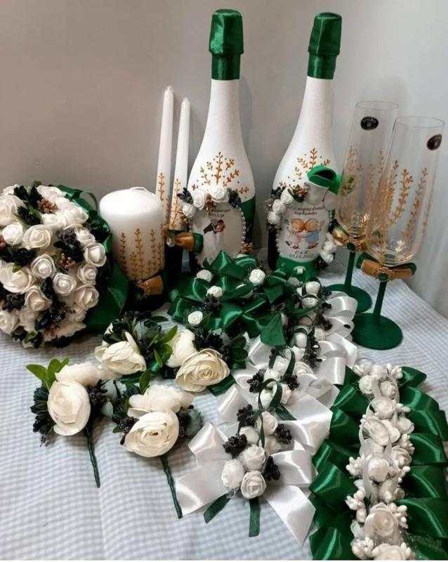 В набор входит: Шампанское 800грн/пара Набор свечей "Семейный очаг" 650грн Келихи 600грн/пара Букет-дублер 350грн Стоимость набора указана без бутоньерок. Стоимость бутоньерок Для носителей и сверхреченных 70грн/шт Для гостей 15грн/шт Для деток 5грн/шт