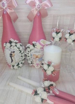 В набор входит: Шампанское 800грн/пара Келихи 500грн/пара Набор свечей "Семейный очаг" 600 грн