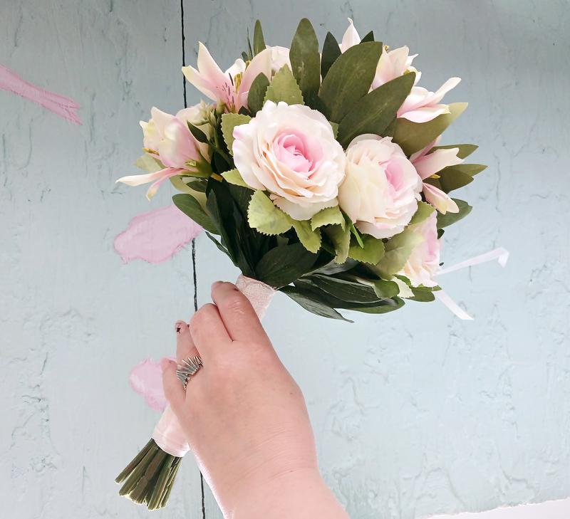 Букет невесты дублер ручной работы с Интер"ерных тканичных цветов отличного качества, ткань - сатин, цвет айвори с розовым. Все цветы альстромерии и розы надежно связаны между собой, так что при бросании подружкам, и падении не повредится. Общая высота 34 см, диаметр цветочной полусферы 23 см., ручка декорирована кружевом и атласной лентой. Выпущенные стебли имитируют букет из живых цветов. Цена доступна. Отлично для фотосессии, будет реалистично смотреться на всех ваших фото. Есть и другие букеты.