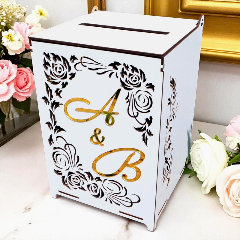Коробка для денег на свадьбу + ваши инициалы, свадебная деревянная копилка, сундук для сбо...